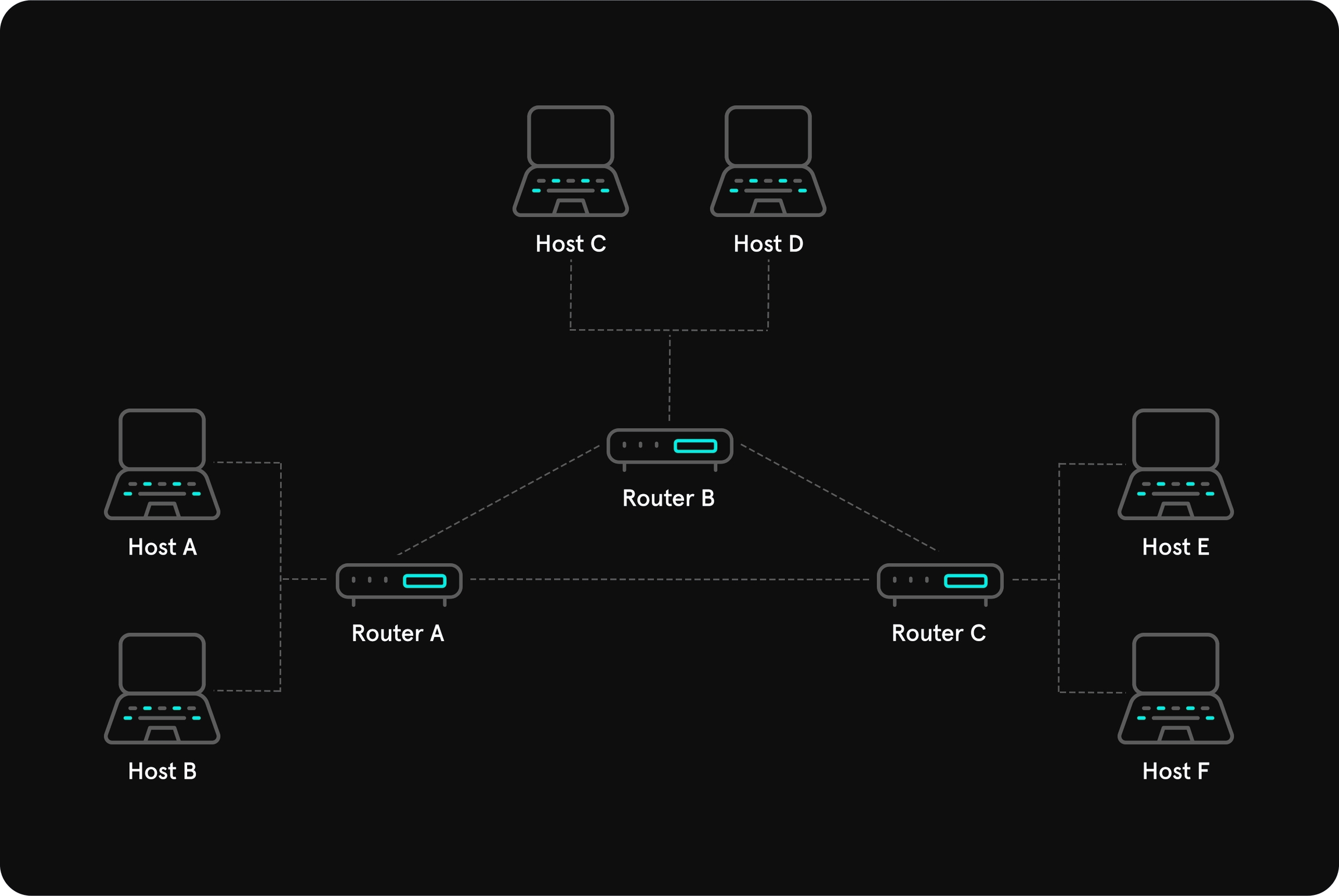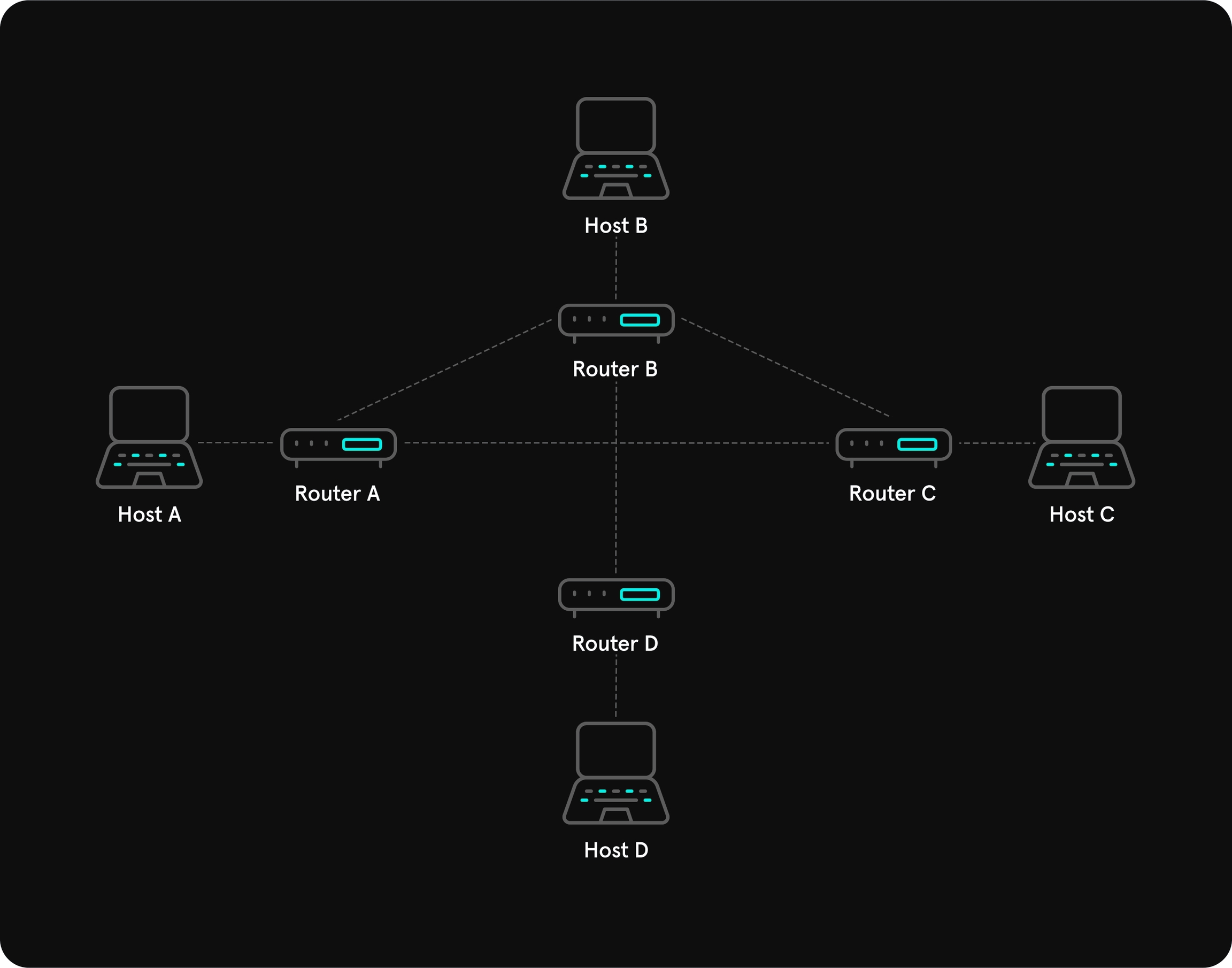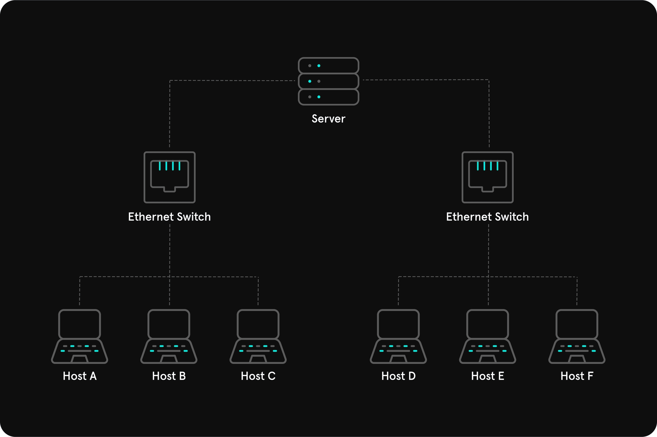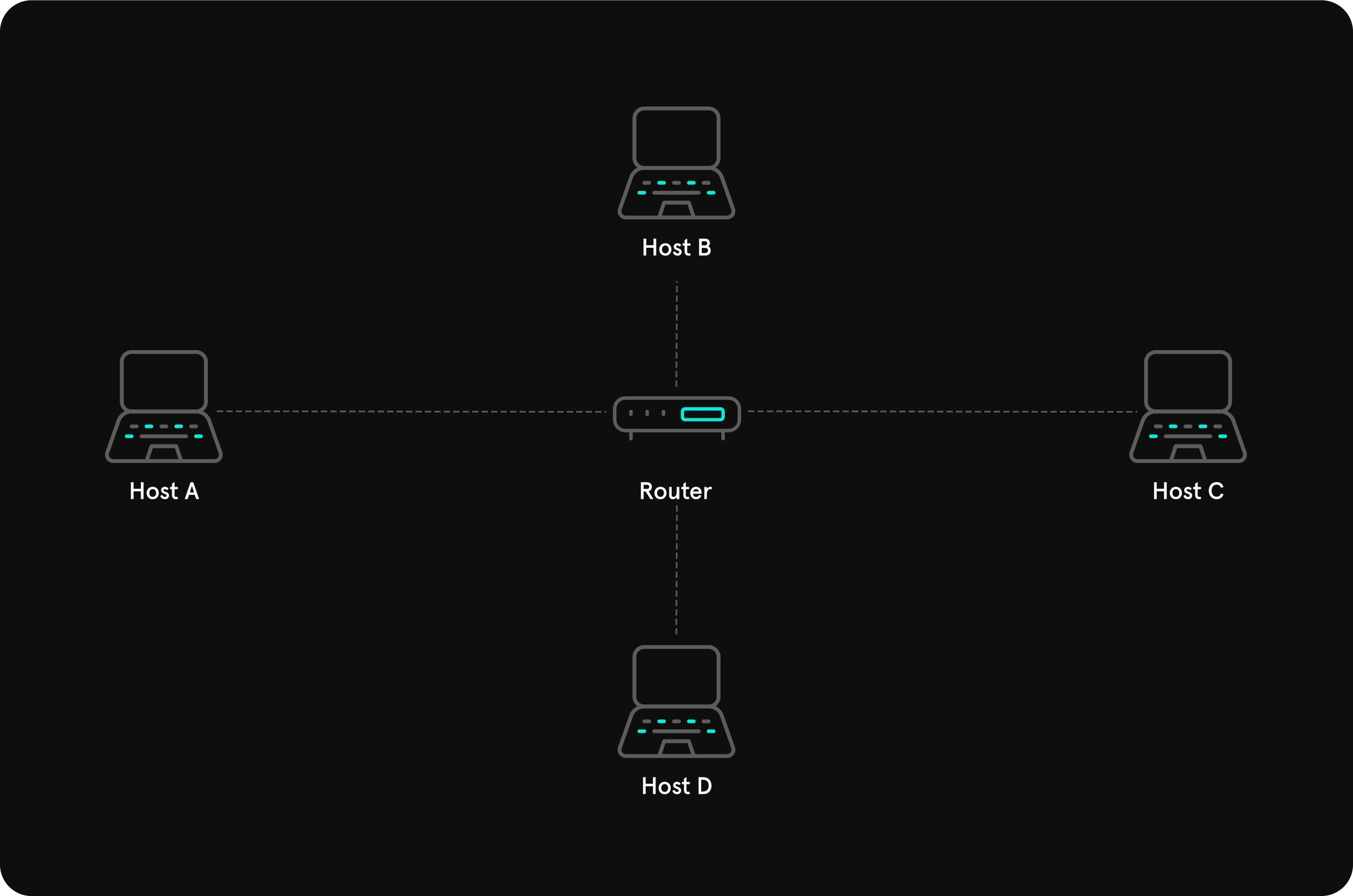 All hosts are connected to central network component (switch, bridge or a hub) which is used for packet forwarding.